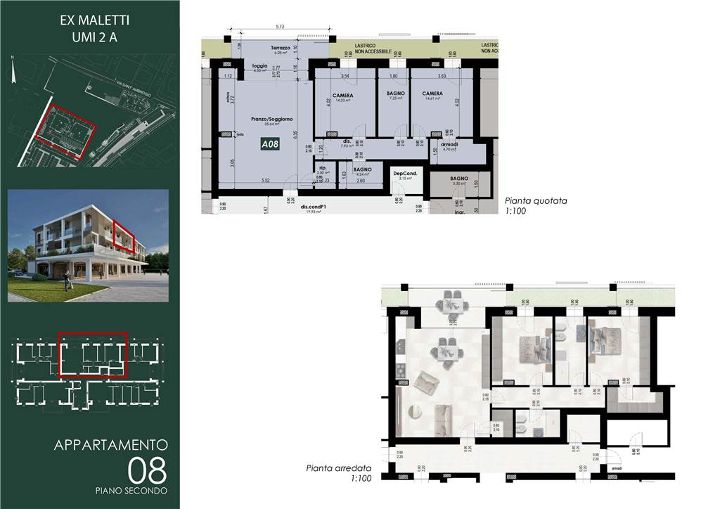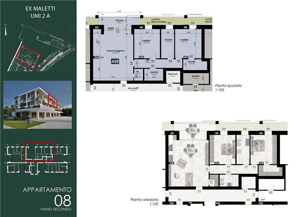 MO860-UMI2A(A8). Nostra esclusiva, Casinalbo, Borgo San Luigi - Ex Salumificio Maletti, in angolo verde comodo a tutti i servizi prossima realizzazione di comparto residenziale (Classe Energetica A4 - NZEB) composto da nr. 9 palazzine e due ville indipendenti. All'interno della palazzina UMI2A, di dieci unità abitative, vendesi app.to "A8" di 136 mq. comm. ubicato al piano secondo e ultimo con ascensore.