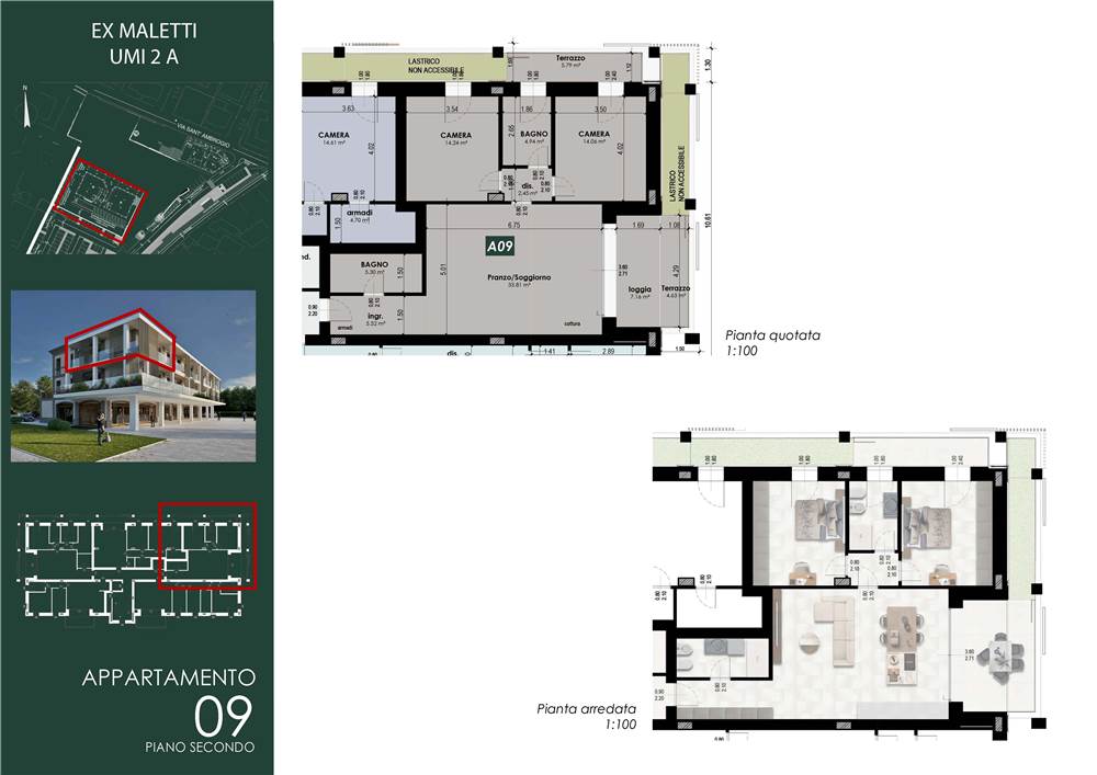 MO860-UMI2A(A9). Nostra esclusiva, Casinalbo, Borgo San Luigi - Ex Salumificio Maletti, in angolo verde comodo a tutti i servizi prossima realizzazione di comparto residenziale (Classe Energetica A4 - NZEB) composto da nr. 9 palazzine e due ville indipendenti. All'interno della palazzina UMI2A, di dieci unità abitative, vendesi app.to "A9" di 132 mq. comm. ubicato al piano secondo e ultimo con ascensore.