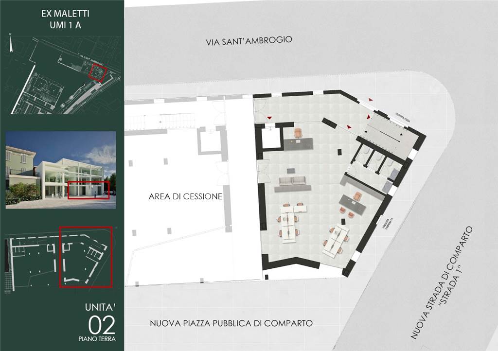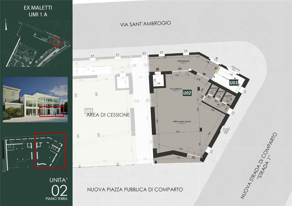 Al piano terra della palazzina UMI1A vendesi ufficio "U2" di 124 mq. dotato di ingresso indipendente.