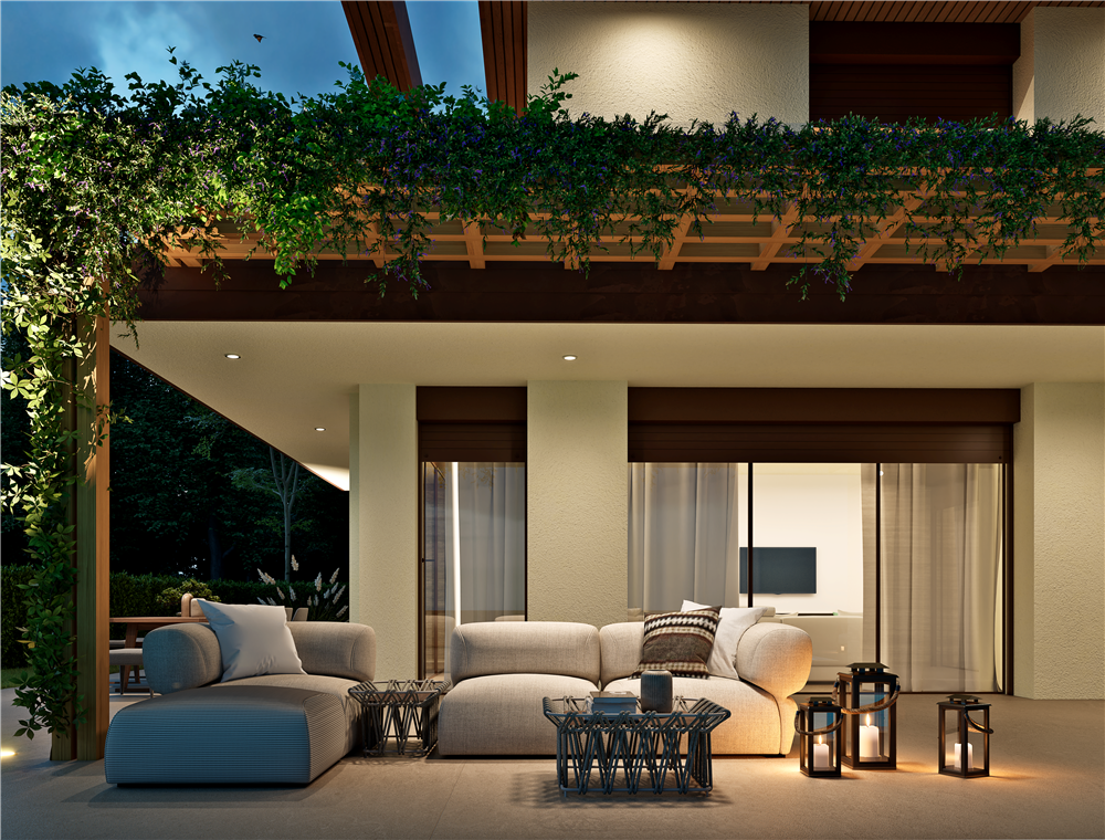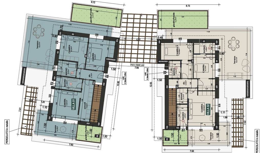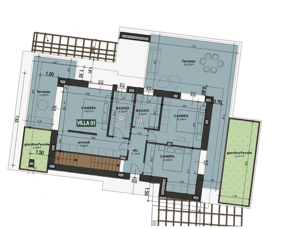 Immobile dotato di ingresso indipendente, giardino privato di 431 mq, ampio porticato, autorimessa doppia di 45 mq e due ampi terrazzi (68 mq).
