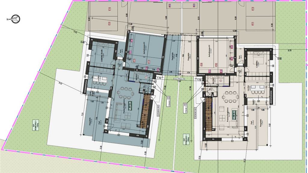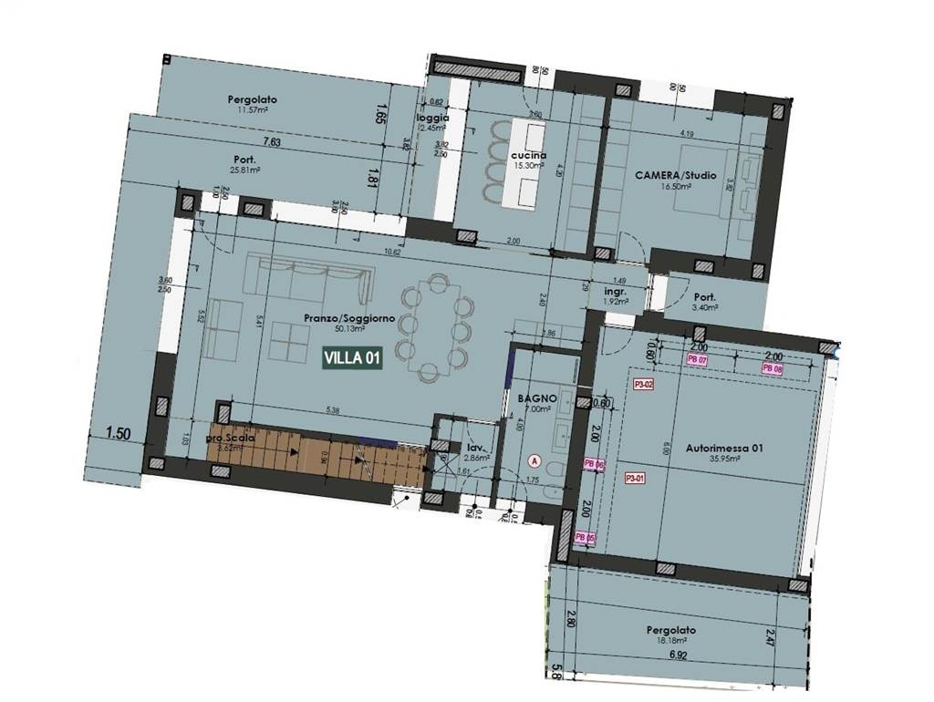 Villa così disposta; PT: ingresso, ampio soggiorno con doppia vetrata e affaccio su grande porticato e area cortiliva privata, cucina abitabile, bagno finestrato, lavanderia finestrata e studio/camera degli ospiti. P1°: dis., tre camere da letto matrimoniali tutte dotate di grandi terrazzi, cabina armadi e due bagni finestrati.