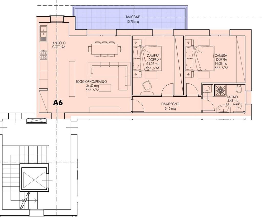App.to così disposto: soggiorno/pranzo con angolo cottura, balcone, disimpegno, due camere da letto e bagno finestrato.
