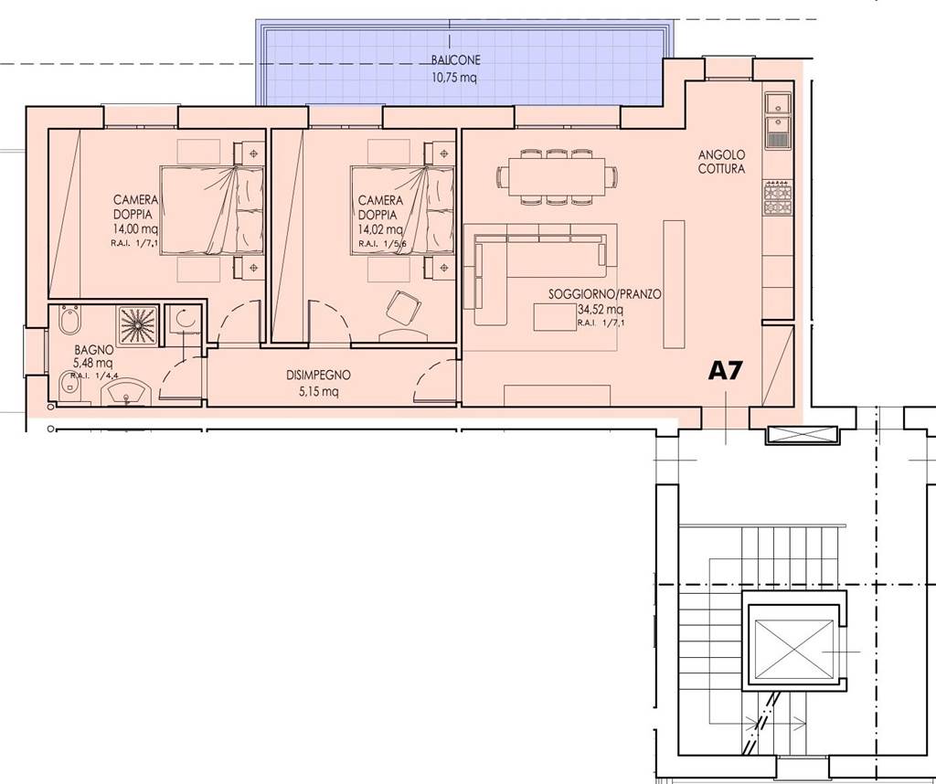 App.to così disposto: soggiorno/pranzo con angolo cottura, balcone, disimpegno, due camere da letto e bagno finestrato.