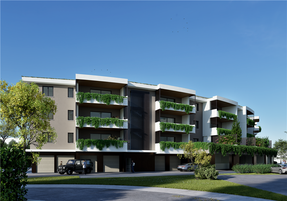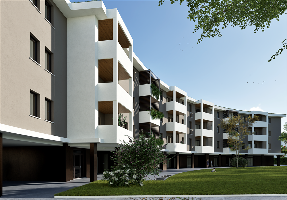 MO867B_B2 Nostra esclusiva, Via del Mercato, all'interno del nuovo comparto Ex Mercato Bestiame, nuova realizzazione di palazzina (Classe Energetica A4-NZEB) vendesi appartamento "B2" al piano primo con ascensore, di 104 mq., loggia coperta e giardino pensile di 35 mq.